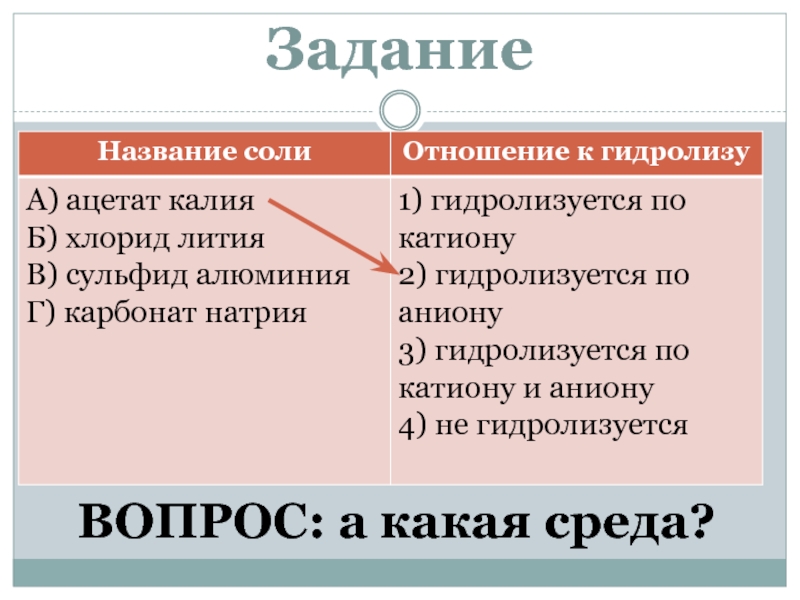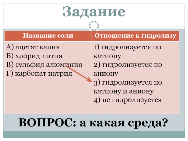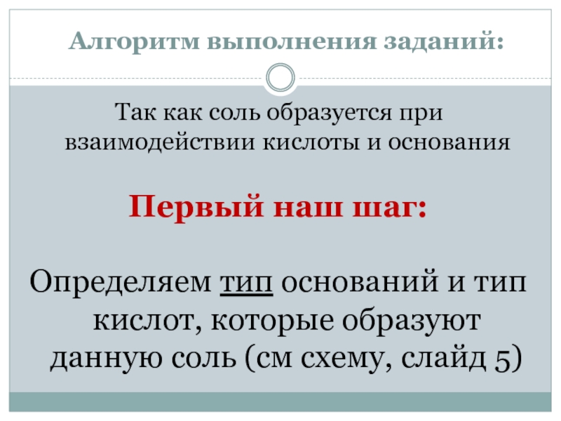Определяем тип оснований и тип кислот, которые образуют данную соль (см схему, слайд 5)