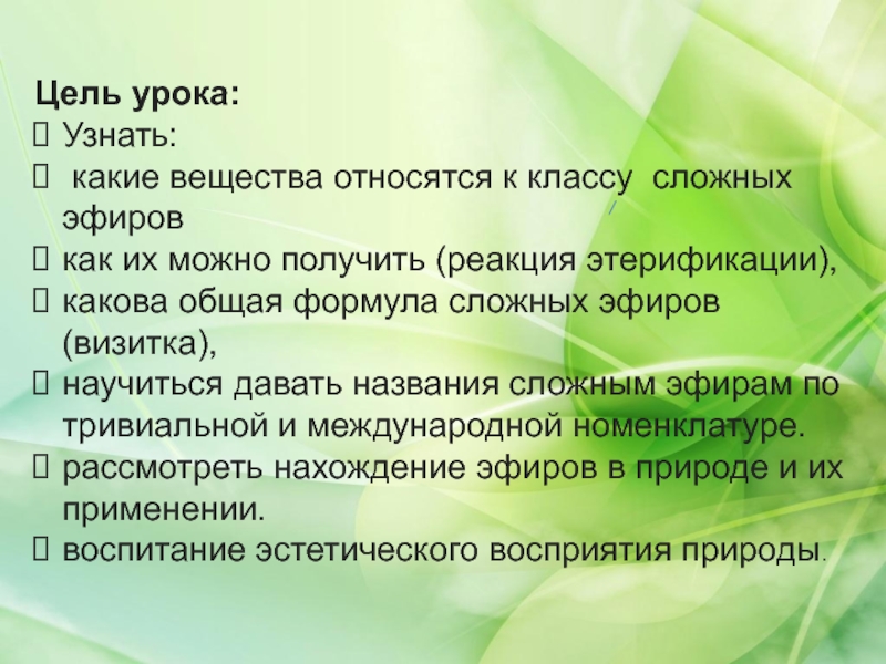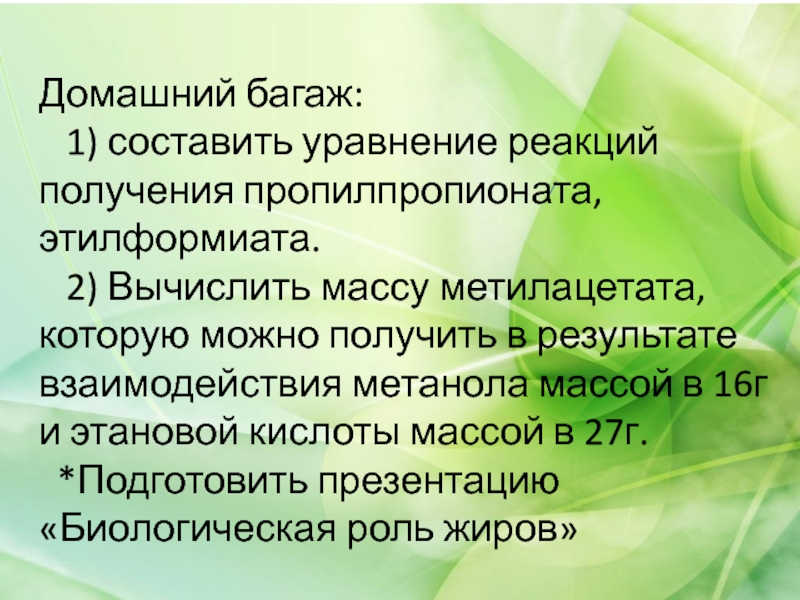 Особенности реакции этерификации: