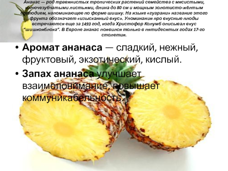 Запах ананаса улучшает взаимопонимание, повышает коммуникабельность.
