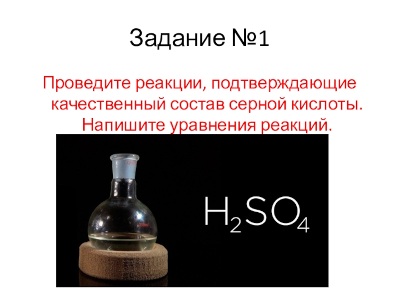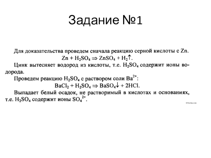 Задание №1Проведите реакции, подтверждающие качественный состав серной кислоты. Напишите уравнения реакций.