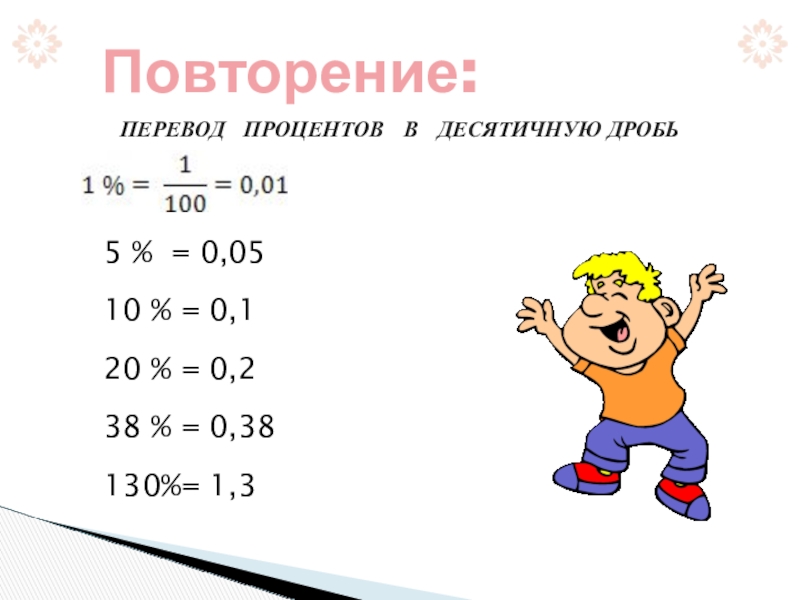 ПЕРЕВОД ПРОЦЕНТОВ В ДЕСЯТИЧНУЮ ДРОБЬ