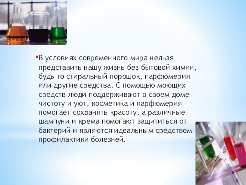 Слайд 3В условиях современного мира нельзя представить нашу жизнь без бытовой химии,