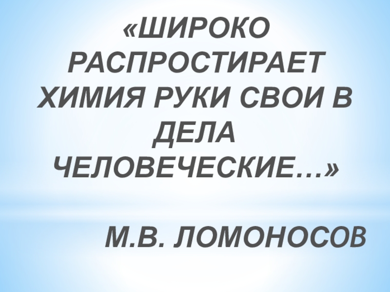 Слайд 8«ШИРОКО РАСПРОСТИРАЕТ ХИМИЯ РУКИ СВОИ В ДЕЛА ЧЕЛОВЕЧЕСКИЕ…»