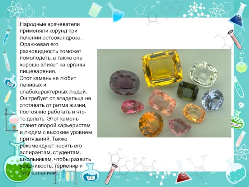 Слайд 5Народные врачеватели применяли корунд при лечении остеохондроза. Оранжевая его разновидность поможет