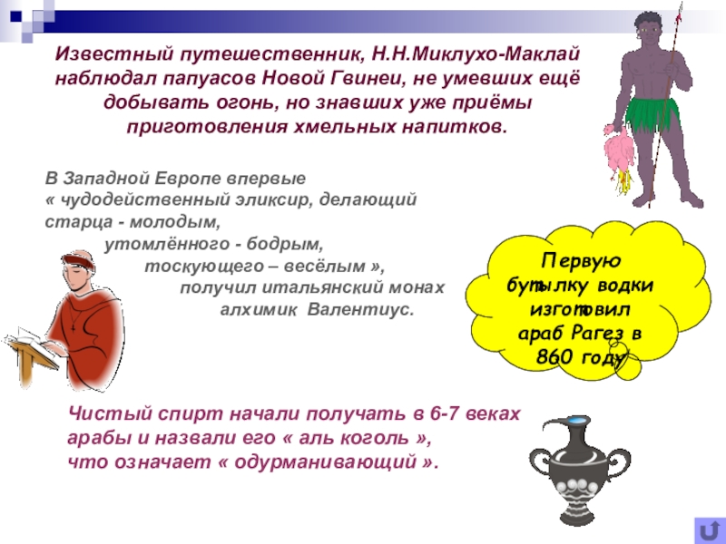Чистый спирт начали получать в 6-7 веках арабы и назвали его « аль коголь »,