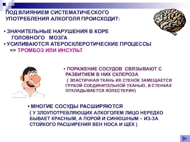 ПРИ СИСТЕМАТИЧЕСКИХ УПОТРЕБЛЕНИЯХ СПИРТНЫХ НАПИТКОВ ЖИРОВЫЕ ИЗМЕНЕНИЯ В КЛЕТКАХ ПЕЧЕНИ ПРИВОДЯТ К ОМЕРТВЛЕНИЮ ПЕЧЁНОЧНОЙ ТКАНИ – РАЗВИВАЕТСЯ ЦИРРОЗ ПЕЧЕНИ.