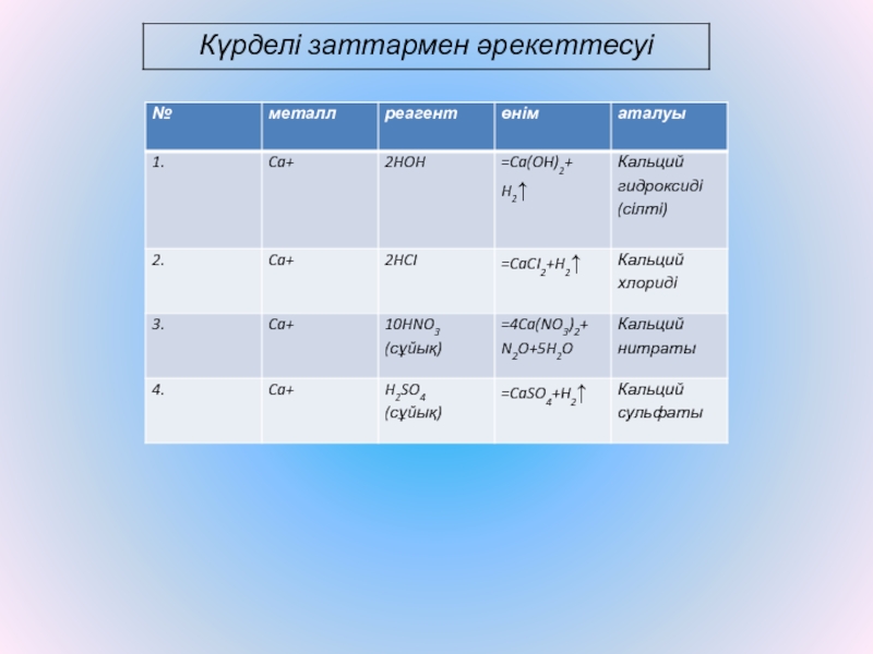 2)кальцийдің тұз қышқылымен әрекеттесуі