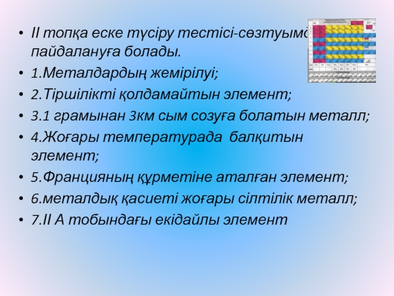 Слайд 7ІІ топқа еске түсіру тестісі-сөзтуымды пайдалануға болады.