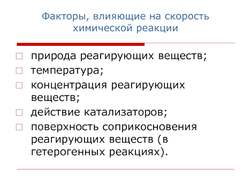Слайд 7Факторы, влияющие на скорость химической реакции