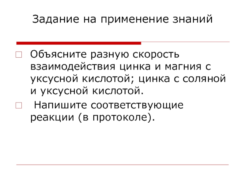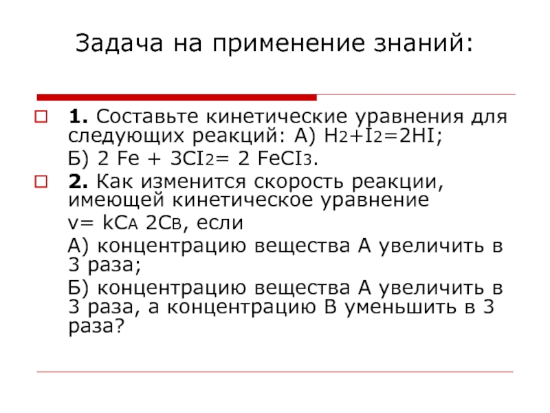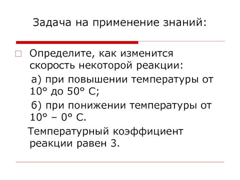 Слайд 5Задача на применение знаний по «Скорости химических реакций»