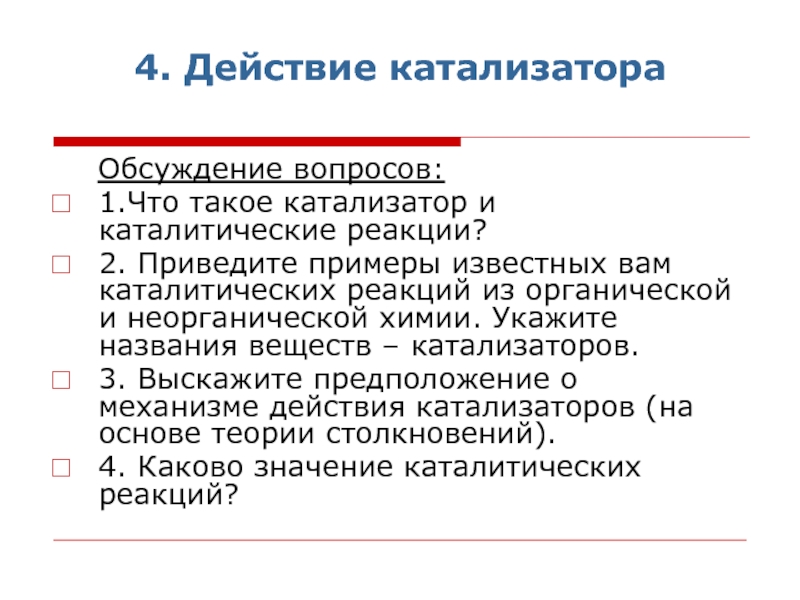 3. Выскажите предположение о механизме действия катализаторов (на основе теории столкновений).