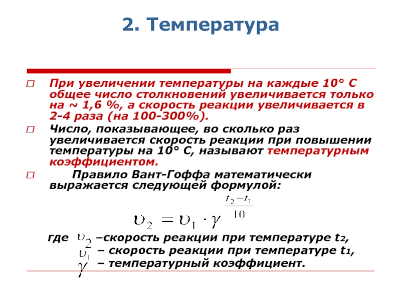 Правило Вант-Гоффа математически выражается следующей формулой:
