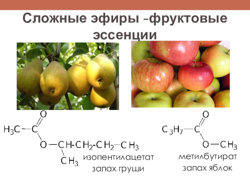 CH3COOCH2CH2CH(CH3)2 — изоамилацетат (изопентилацетат), используется как компонент грушовой и банановой эссенции.