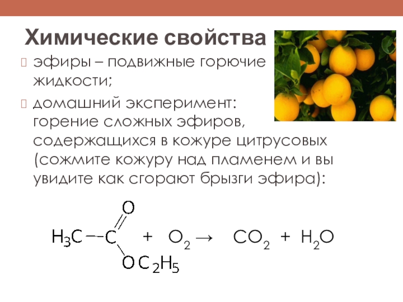 CH3COOC8H17 — н-октилацетат имеет запах апельсинов.