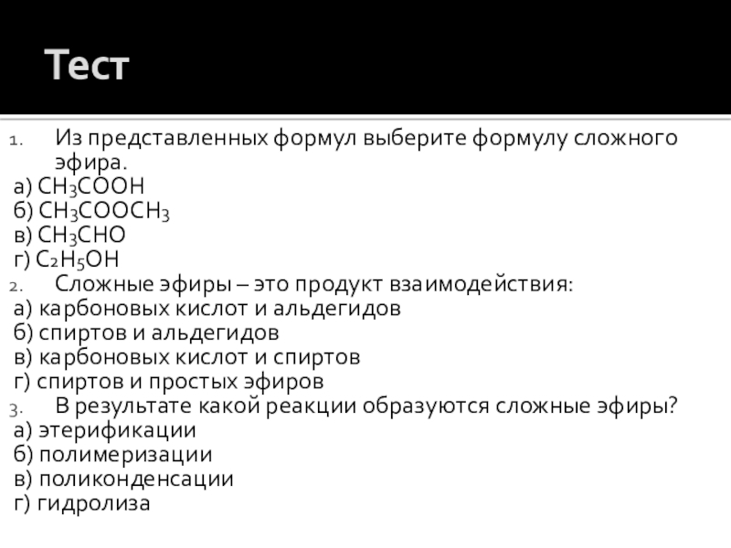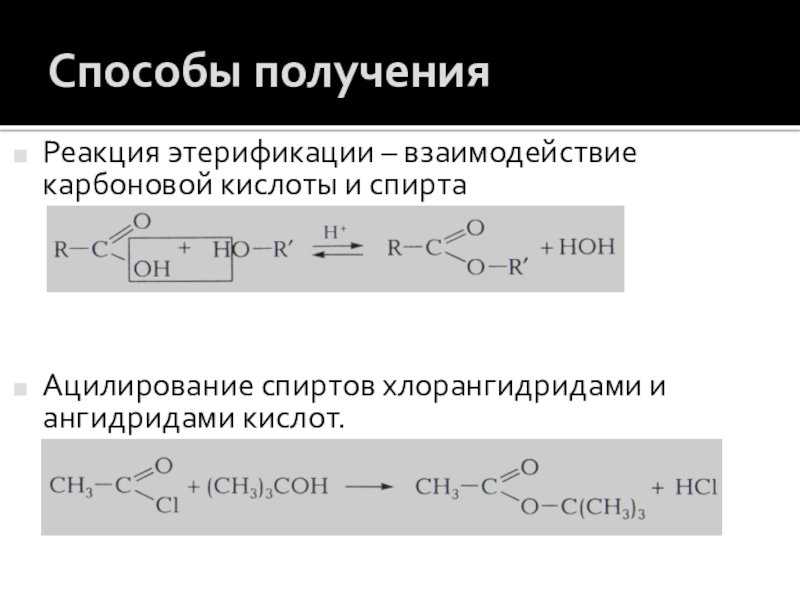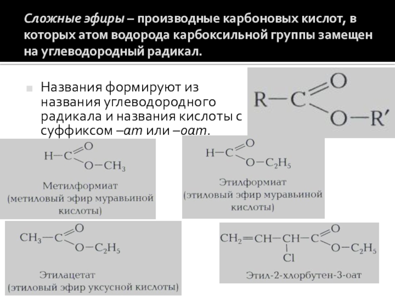 Названия формируют из названия углеводородного радикала и названия кислоты с суффиксом –ат или –оат.