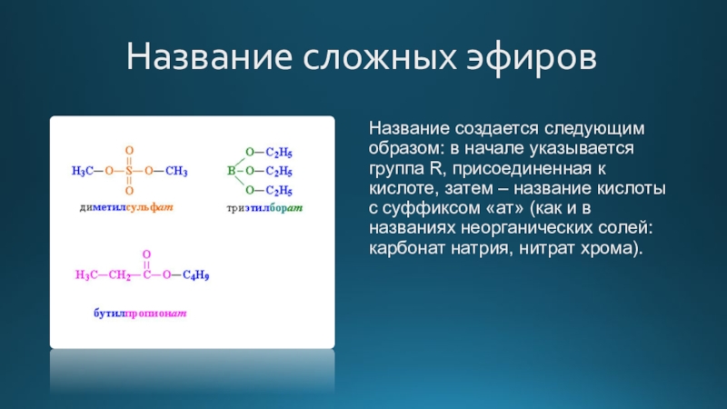 Презентация, доклад на тему Сложные эфиры и жиры. Получение, применение, свойства