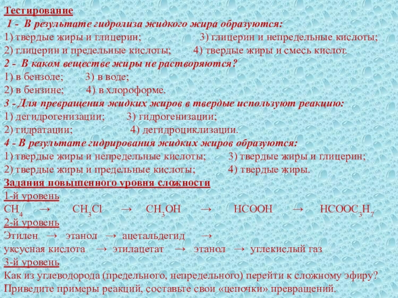 ХИМИЧЕСКИЕ СВОЙСТВА ЖИРОВ: