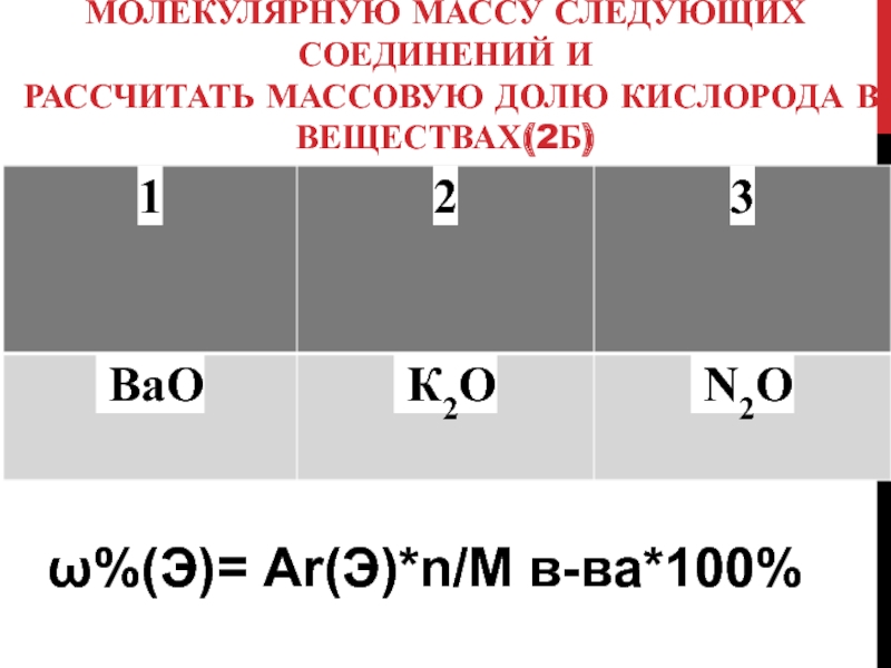 ω%(Э)= Аr(Э)*n/М в-ва*100%