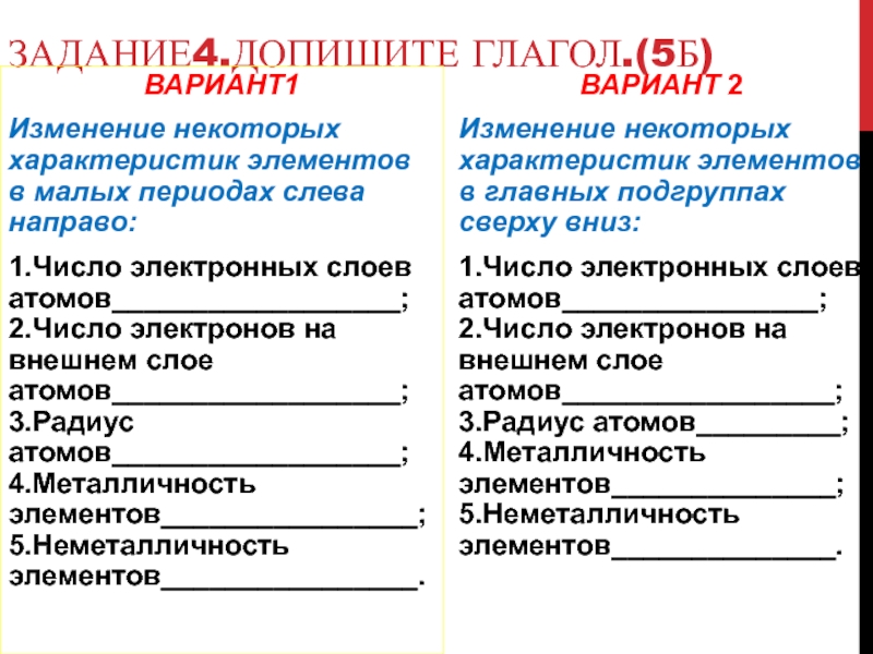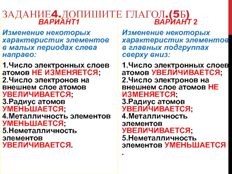 1.Число электронных слоев атомов УВЕЛИЧИВАЕТСЯ;