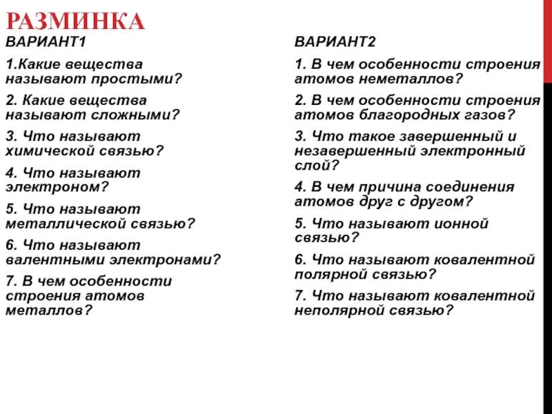 2.Число электронов на внешнем слое атомов НЕ ИЗМЕНЯЕТСЯ;