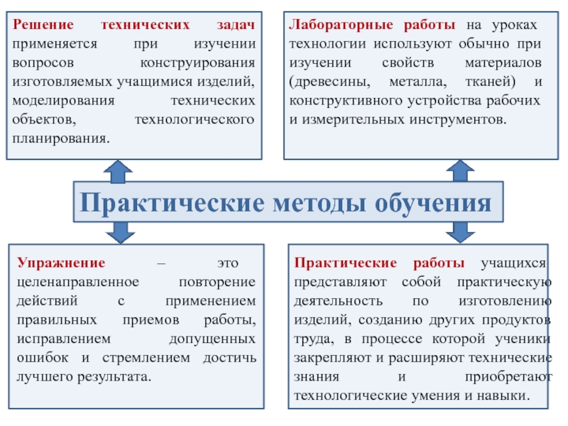 Практические работы учащихся представляют собой практическую деятельность по изготовлению изделий, созданию других продуктов труда, в процессе которой ученики закрепляют и расширяют технические знания и приобретают технологические умения и навыки.