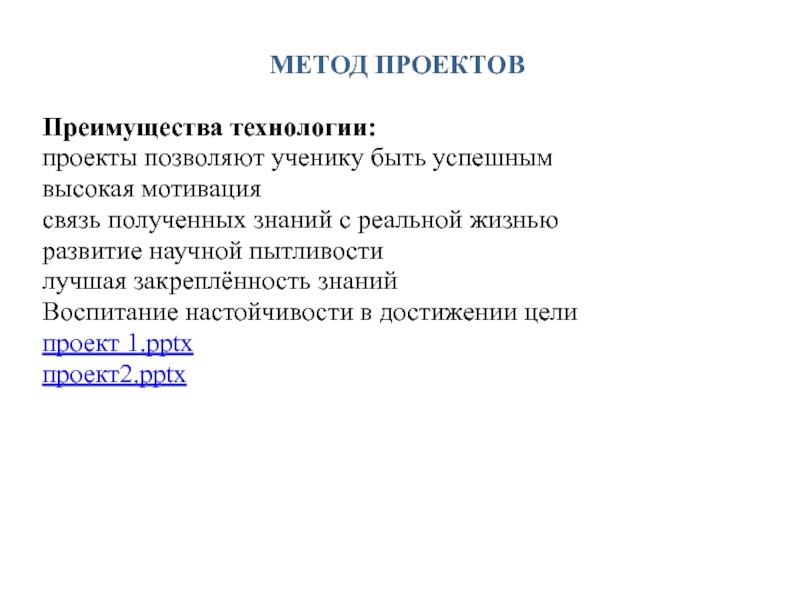 Объяснительно-наглядный (репродуктивный) метод. Он включает демонстрацию, лекцию, изучение литературы, радио- и телевизионные передачи и т.п. Он тренирует память и дает знания, но не обеспечивает радость исследовательской работы и не развивает творческое мышление.