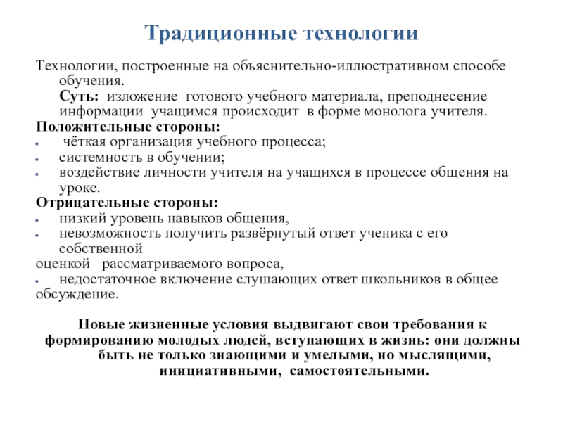 Традиционная технология (объяснительно-иллюстративное обучение)