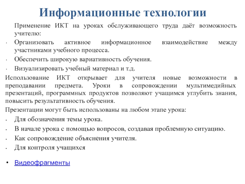 материала, преподнесение информации учащимся происходит в форме монолога учителя.