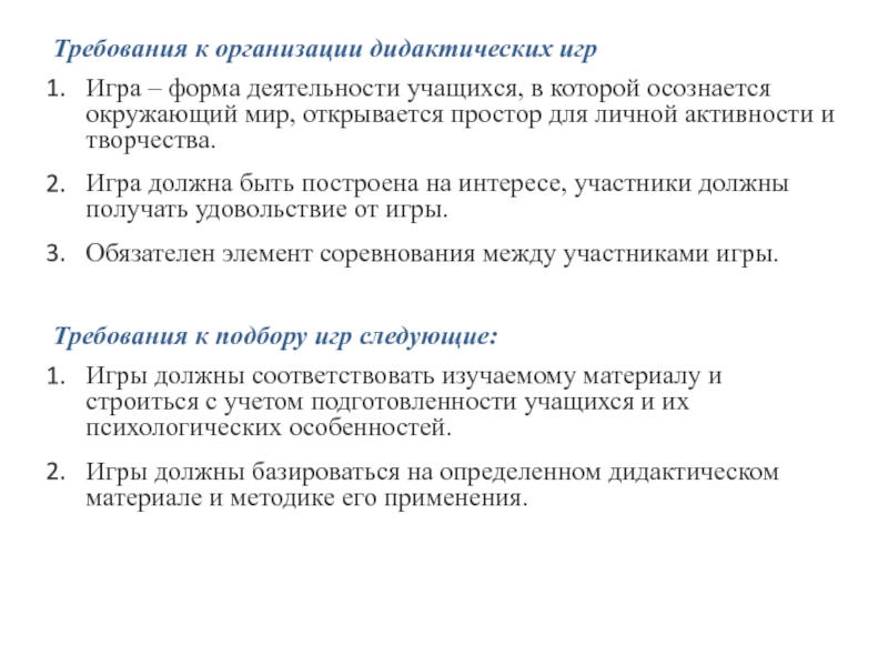 - Соответствовать четко поставленной цели создания - Иметь соответствующий уровень трудности