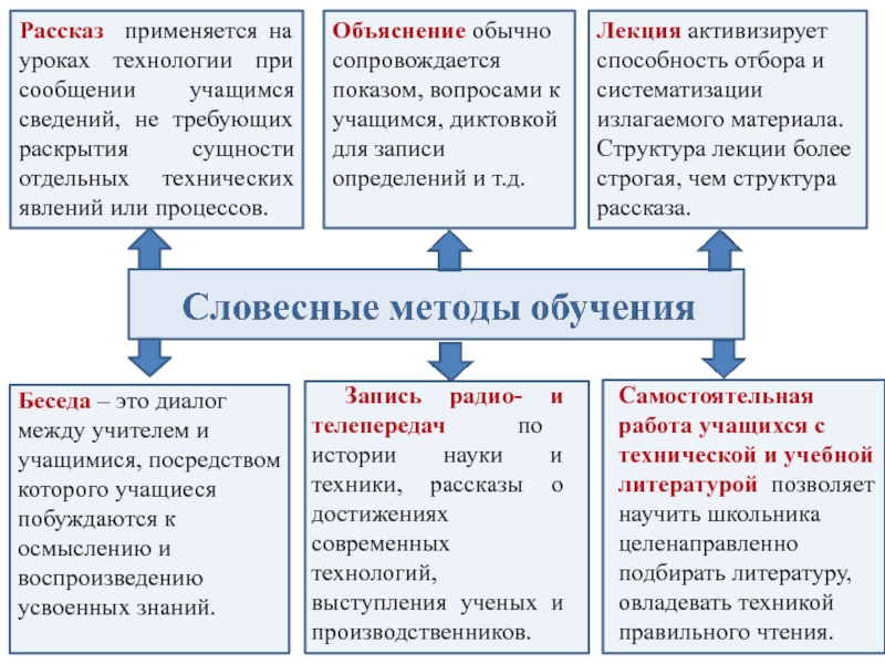 Объяснение обычно сопровождается показом, вопросами к учащимся, диктовкой для записи определений и т.д.