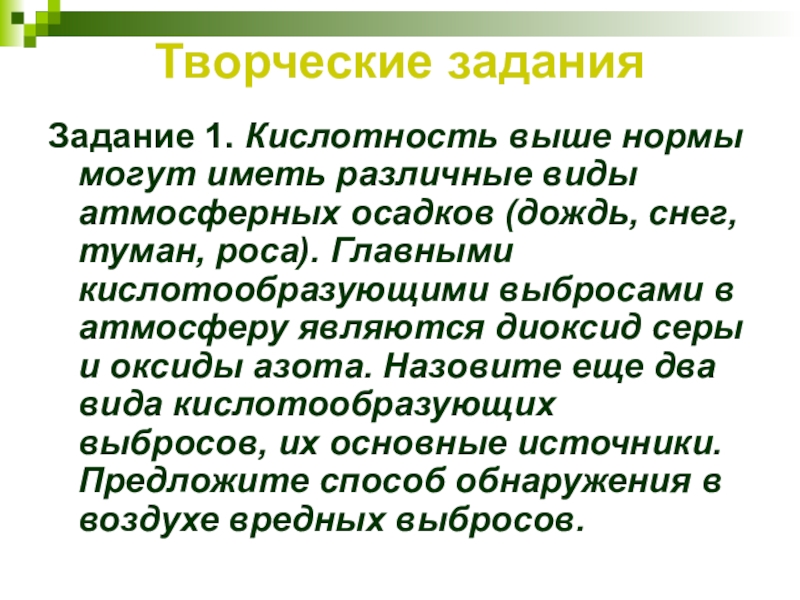 Задание 1. Кислотность выше нормы могут иметь различные виды атмосферных