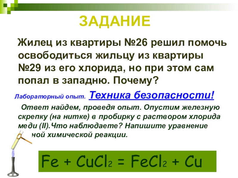 из квартиры №29 из его хлорида, но при этом сам попал в западню. Почему?