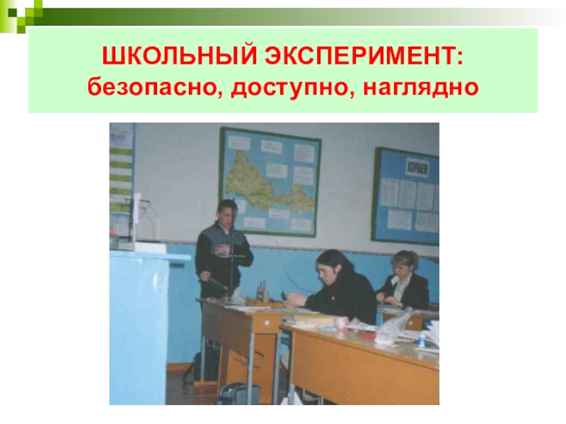 Слайд 13ШКОЛЬНЫЙ ЭКСПЕРИМЕНТ: безопасно, доступно, наглядно