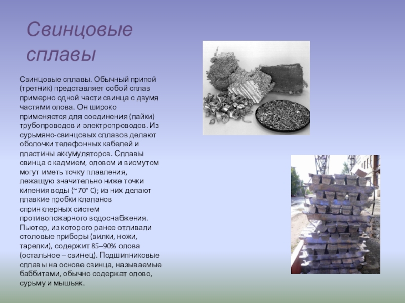 Слайд 8Свинцовые сплавы