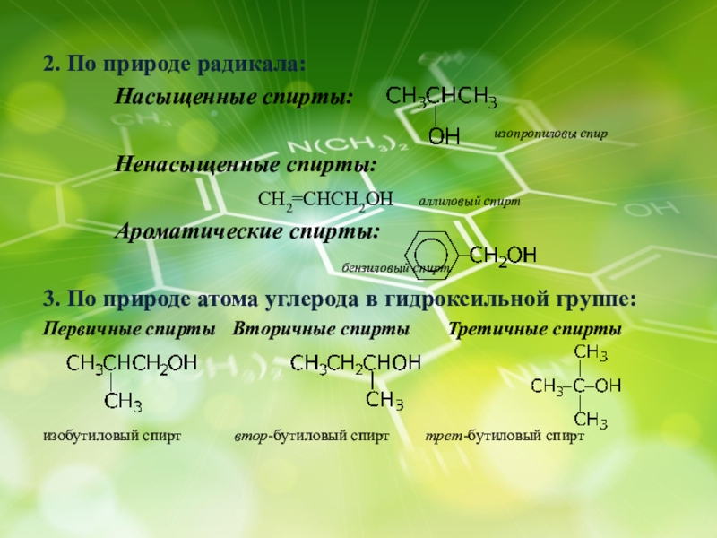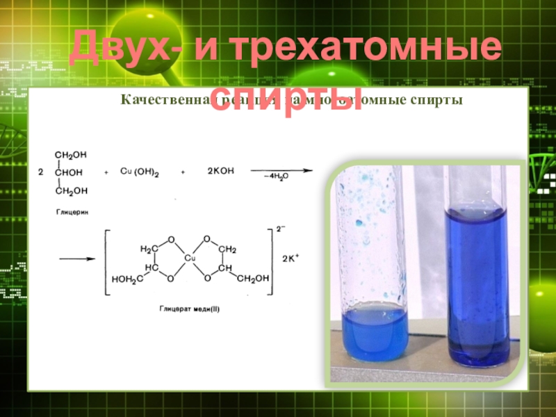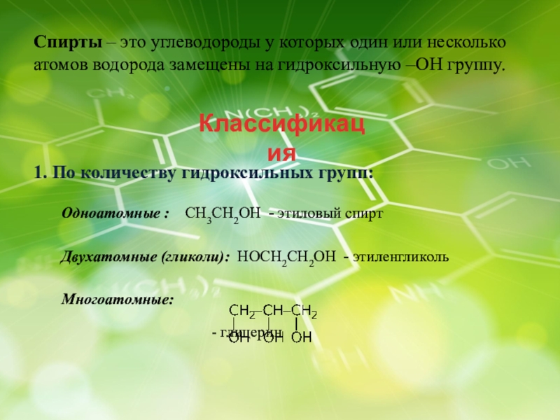Двухатомные (гликоли): НОCH2CH2ОН - этиленгликоль