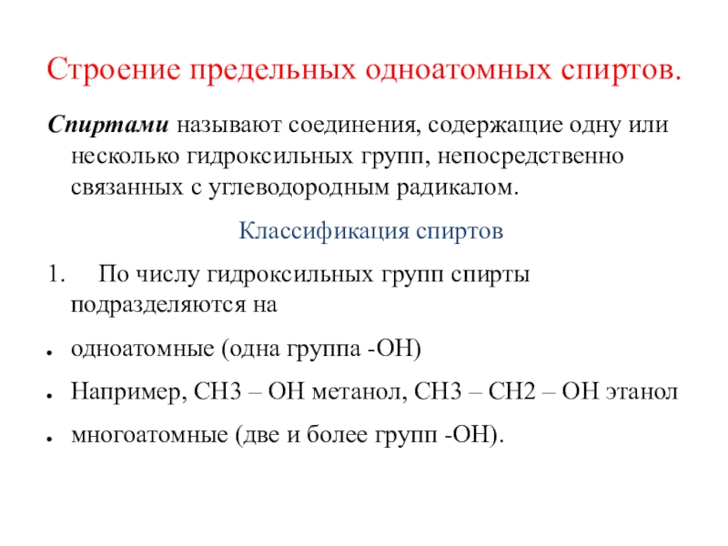 Слайд 2Строение предельных одноатомных спиртов.