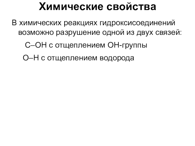 В химических реакциях гидроксисоединений возможно разрушение одной из двух связей: