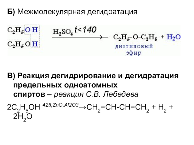 Слайд 21Б) Межмолекулярная дегидратация