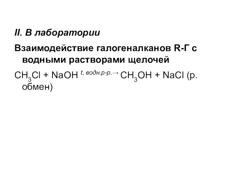 CH3Cl + NaOH t, водн.р-р.→ CH3OH + NaCl (р. обмен)