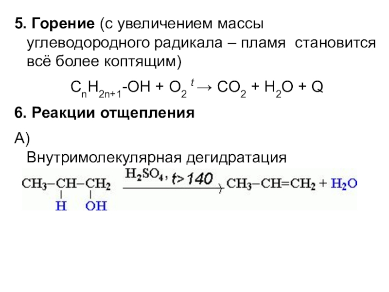 Слайд 205. Горение (с увеличением массы углеводородного радикала – пламя становится всё более коптящим)