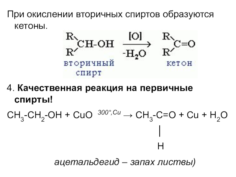 Слайд 19При окислении вторичных спиртов образуются кетоны.