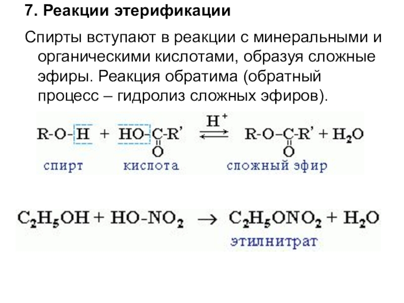 Спирты вступают в реакции с минеральными и органическими кислотами,