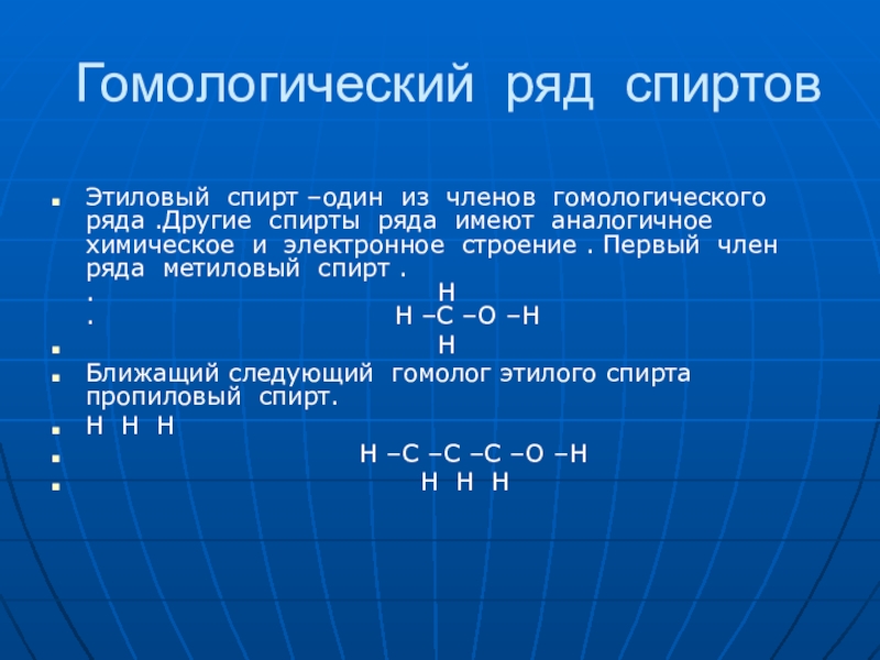 ряда имеют аналогичное химическое и электронное строение . Первый член ряда метиловый спирт . . Н . Н –С –О –Н