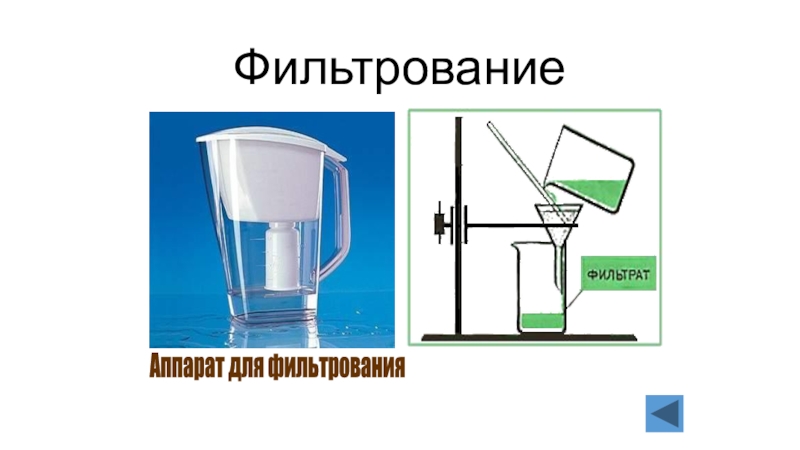 Слайд 18Разделение смеси крахмала и воды фильтрованием