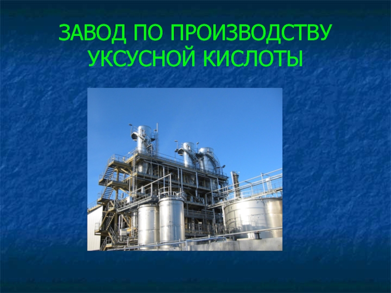 Слайд 5ЗАВОД ПО ПРОИЗВОДСТВУ УКСУСНОЙ КИСЛОТЫ