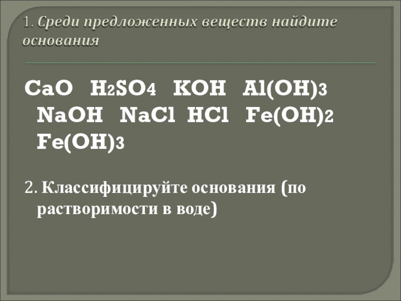 2. Классифицируйте основания (по растворимости в воде)
