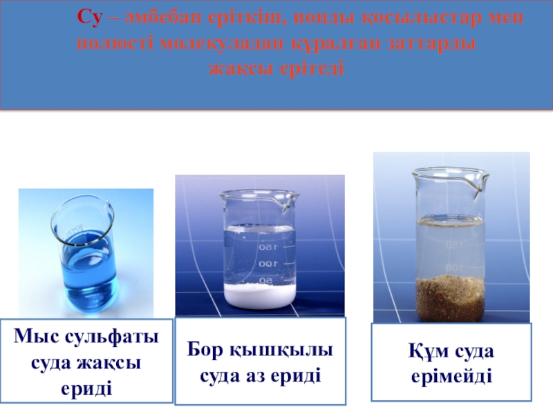 Су – әмбебап еріткіш, ионды қосылыстар мен