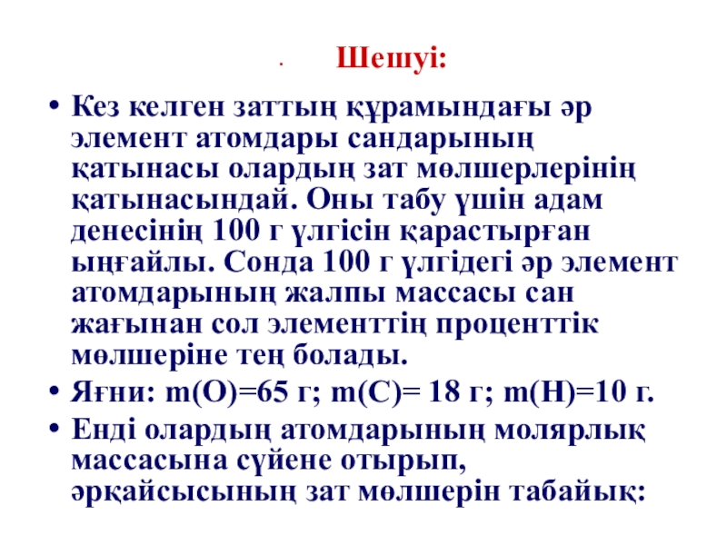 Яғни: m(O)=65 г; m(С)= 18 г; m(H)=10 г.