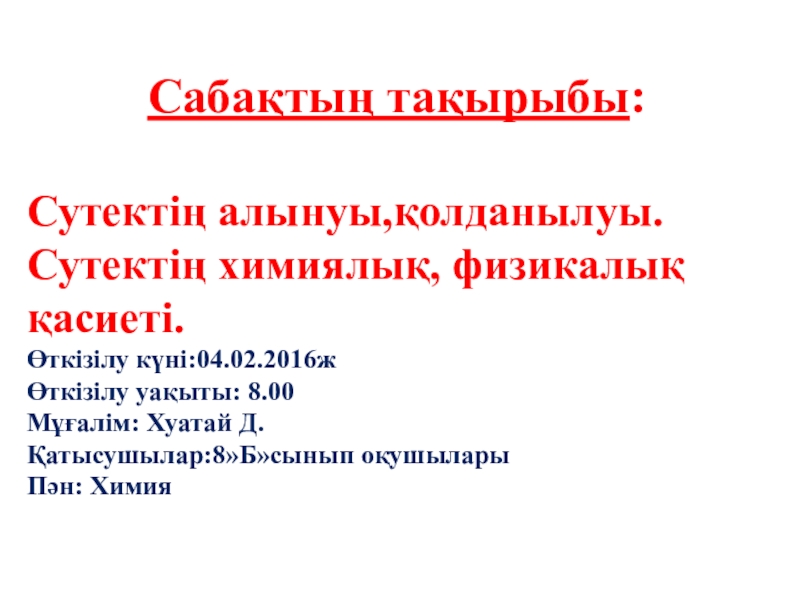 “Сутегі, қасиеттері,алынуы, қолданылуы”атты тақырыптасабақ өту барысында оқушылардың жалпы түсінігін қалыптастыру,оқу