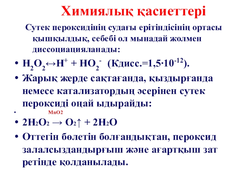 H2O2↔H+ + HO2- (Кдисс.=1,5∙10-12).